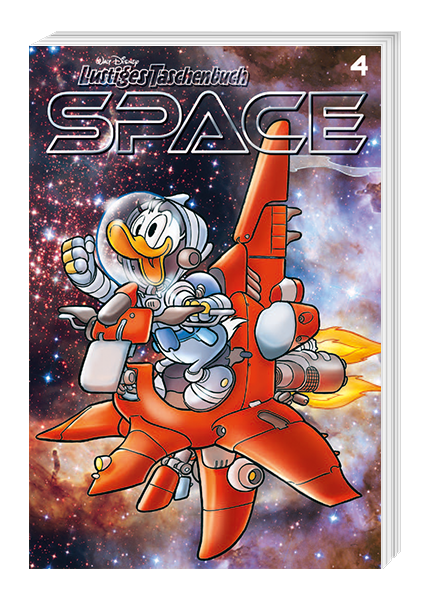 In der Miniserie LTB Space erleben unsere beliebten Helden Donald, Dagobert, Micky und Co. kosmische Abenteuer in den Tiefen des Universums, weit entfernt vom heimischen Entenhausen. Die sechs Bände mit jeweils 300 Comicseiten im luxuriösen Premiumformat liefern galaktischen Comicspaß und fantastische Unterhaltung zum Abheben. Schwarze Löcher, fiese Aliens und allerhand weitere Gefahren lauern auf unsere Freunde!
